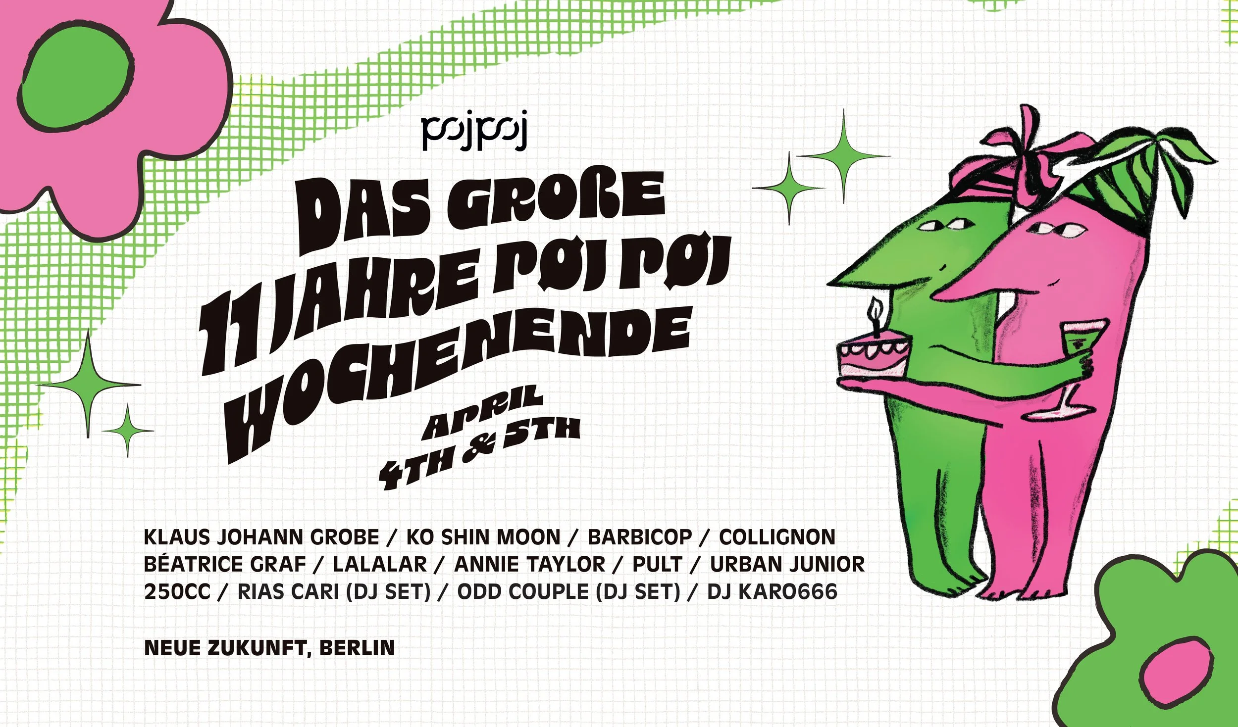 Musiikkialan agenttuuri Pøjpøj juhlisti 11-vuotissyntymäpäiviään keväällä 2025 viikonlopun mittaisella tapahtumalla Berliinissä. Vastasin festivaalin visuaalisen ilmeen suunnittelusta kokonaisuudessaan. Konsepti rakentui agentuurin kahden perustajan ja syntymäpäiväluvun ympärille – numero 11 toimi kantavana elementtinä läpi kaiken. Tunnelma haluttiin pitää leikkisänä, mutta harkittuna: linjassa Pøjpøjin aiempien tapahtumien kanssa. Kokonaisuuteen kuuluivat julisteet, some-postaukset, artistiesittelyvideot sekä muu markkinointimateriaali. Painotuotteina toteutettiin mm. tarroja, t-paitoja tapahtumaan.
